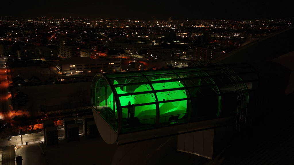 3) 昼も、夜も、外から見える、光る展望台展示