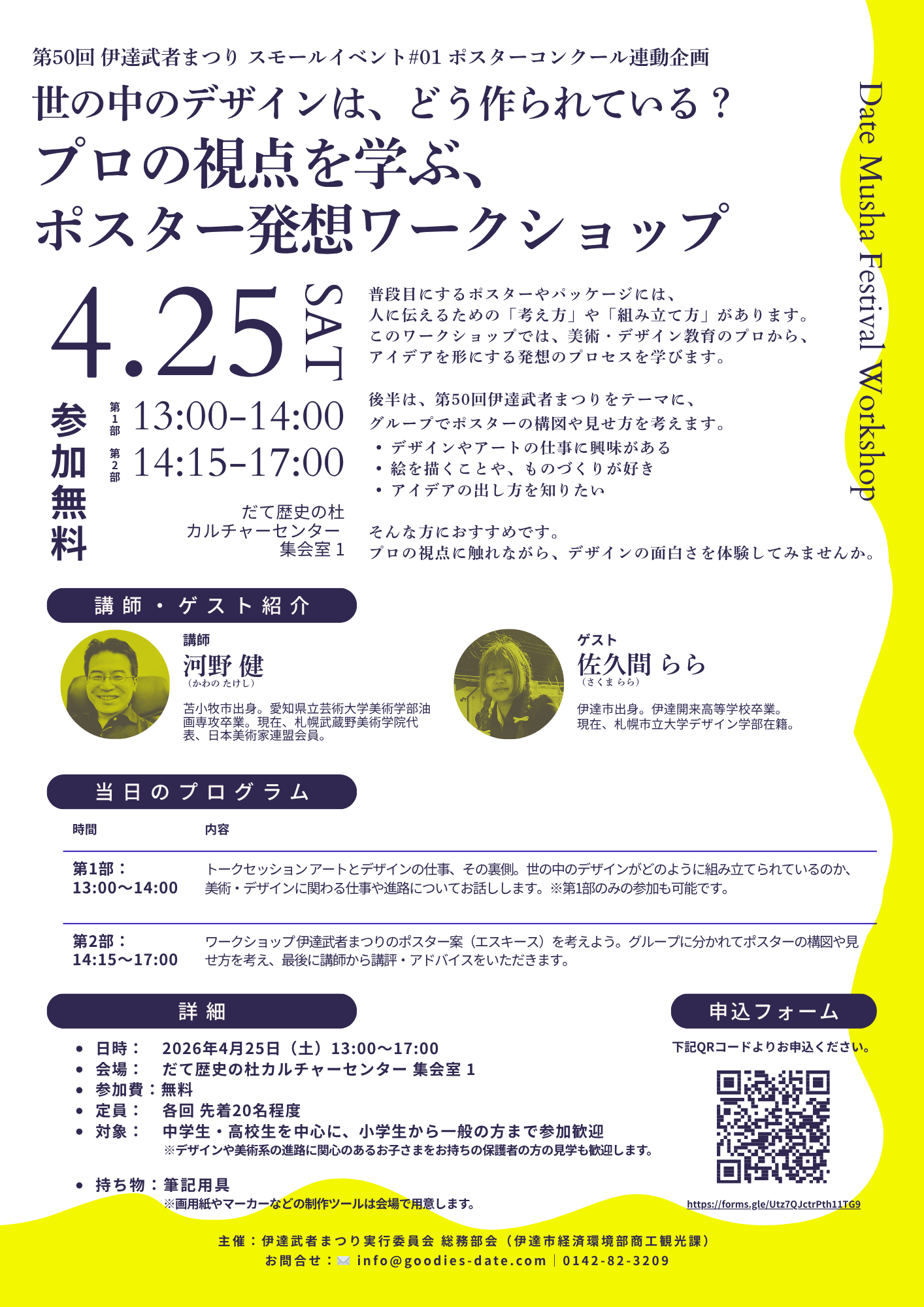 ZOKZOKの「ZtoLプロジェクト」の一環として、ZOKZOKコアアーティスト渡辺元佳の出身地である伊達市と、母校である「札幌武蔵野美術学院」がつながり、「第50回伊達武者まつり」ポスターコンクール連動ワークショップを開催します。
