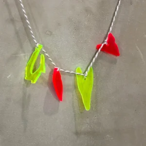 このチャームは、独特なデザインと素材感が魅力です。イエローとピンクのアクリル製ヤジリが10個入ったランダムパックでお届けいたします。さらに、紐3本も付属しており、簡単にネックレスとして使用することができます。