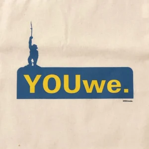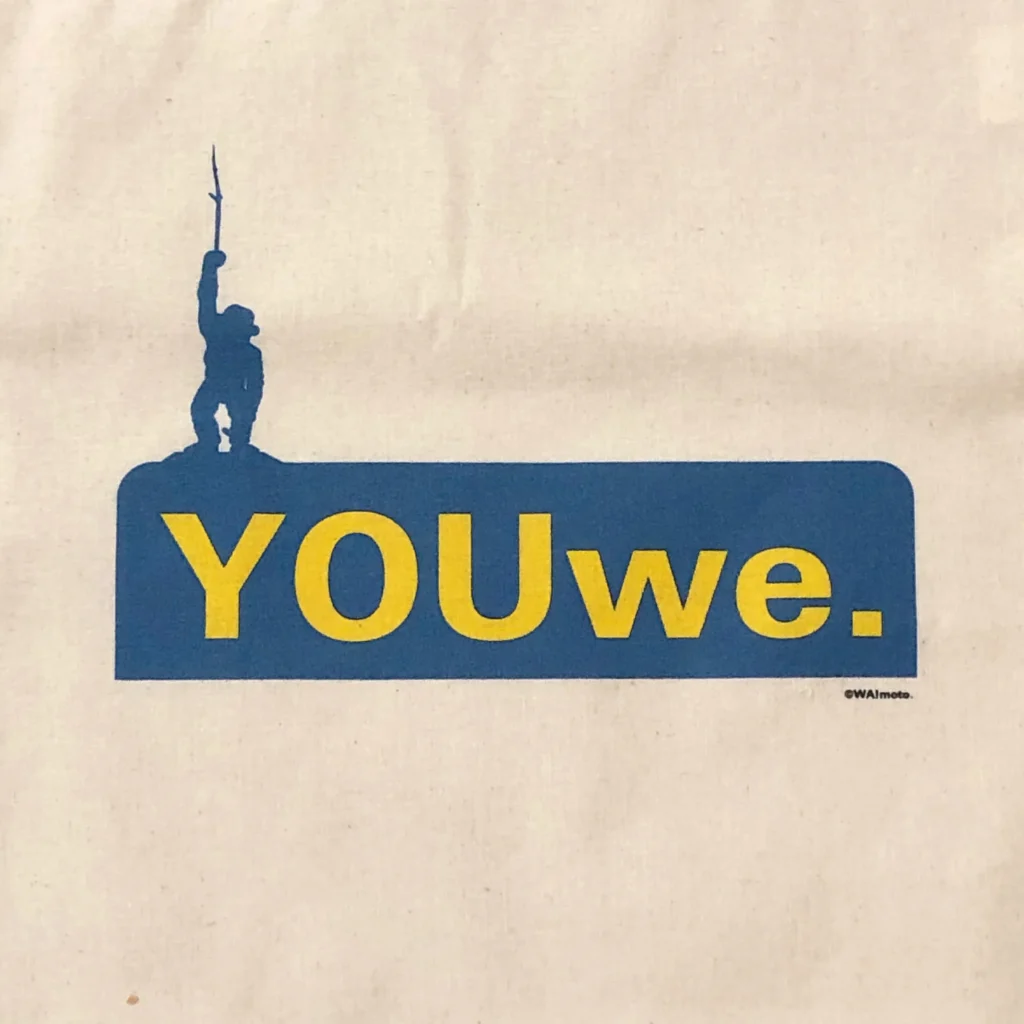 東京渋谷のミヤシタパークのボルダリングウォールの上にいるサルのパブリックアート作品”YOUwe.”のオリジナルロゴがあしらわれた、オリジナルトートバッグです。